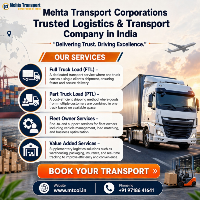 Mehta Transport Corporations provides trusted transport and logistics services across India, including interstate transport, FTL, PTL, and parcel booking with secure and on-time delivery at competitive pricing. - https://apps.apple.com/in/app/mehta-transport/id6752324017